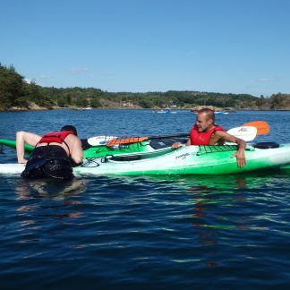 A course where you learn about basic paddle technics, how to getting into and out of the kayak from the shore and also up in the kayak from the sea. Some about handling safety within a group. Bring extra clothes, a raincoat (if needed), bathing clothes, bathing shoes and some water to drink.